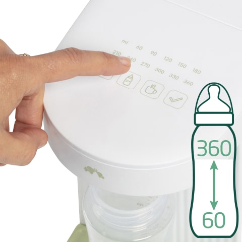 It uses a precision flow control system with an accuracy of ±5%, ensuring your baby gets exactly the amount you set. The water temperature is accurate within 1 to 2°C of the selected setting, ensuring it is safe and consistent for baby formula preparation. Small variations may occur depending on room and tank water temperatures. For best results it is recommended to use water at 20°C in the tank.