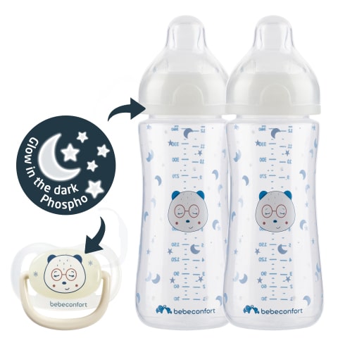 Two glow-in-the-dark rings on the bottles make nighttime feeding simple, guiding you even in low light. While the glow-in-the-dark soother is easy to find in the dark.